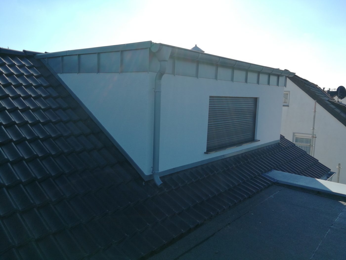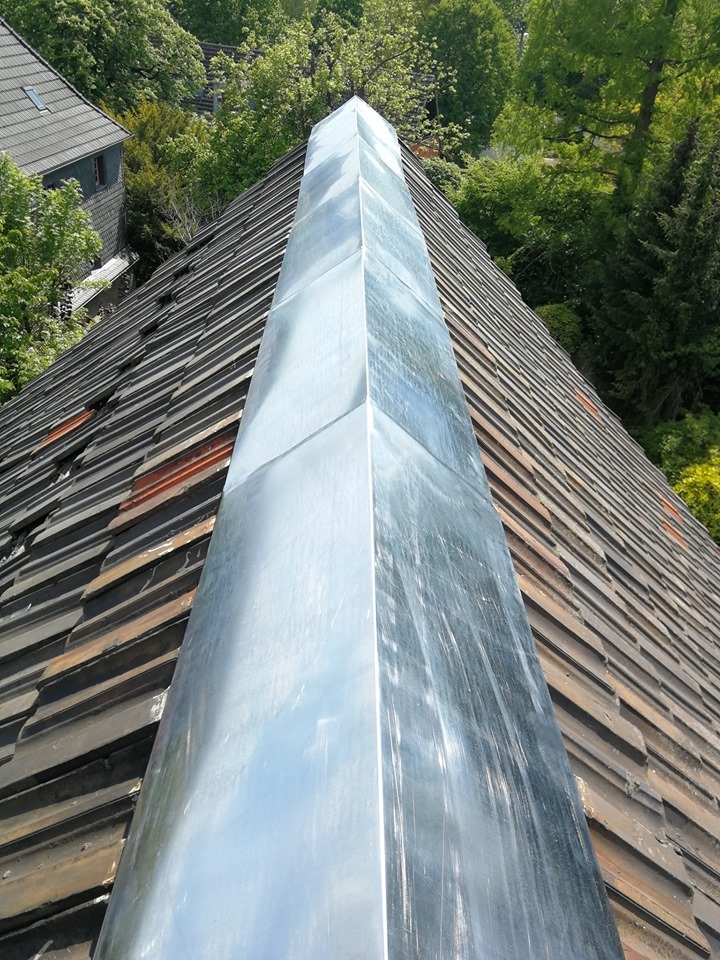Dachsanierung mit Zinkscharen am Ortgang, Rinne und an der Gaube fertiggestellt.