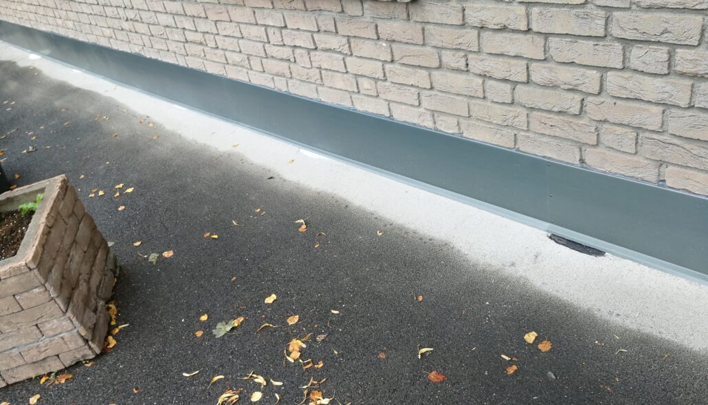 Sockelbekleidung aus Zink in Schiefergrau